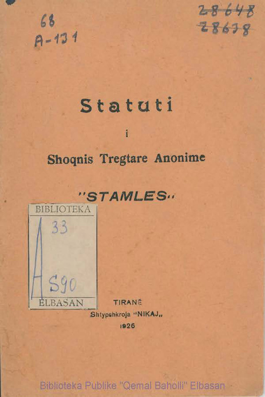 Statuti i Shoqnis Tregtare Anonime "STAMLES"